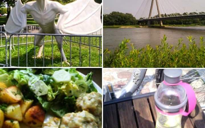 To nic, że nie powinnam ale i tak nie wytrzymałam i zasuwałam na rowerze 😱😅🚲 Powoli dysząc, kaszląc z zasmarkanym nosem, przemierzałam Warszawę 🚵 💪 🙌 Wiecie co nie było to łatwe i w duchu użyłam z 1000 niecenzuralnych słów 😂 No ba żeby tego było mało za Praskim parkiem spadł mi łańcuch 😣 Gmerałam się,wymorusałam i jadę dalej z brudnymi łapami do prawie centrum naszej, pięknej stolicy 😅 Zajechałam do nowo otwartej części Wisły od strony Kopernika. A tam ludzie i dzieci pluskające się w fontannie oraz delfiny wyskakujące z piasku 😅 Odlot 😅 Zmęczyłam się, po cichaczu i korzystając z okazji rozsiadłam się wygodnie na nowiutkiej ławeczce 😃 Wyciągnęłam butelkę, która mnie pokrzepiła: 👉 woda z limonetką i arbuz 🙆👌🍶🍉 Wywołałam szok, bo jak to w takim miejscu można jeść i zachlapać się przy okazji 😄 W domu czekał na mnie obiados 😄 Wszamałam dosłownie migusiem czyli sławetne pulpeciki-tym razem w sosie koperkowym i do tego ziemniaczki oraz mizeria z sałaty rzymskiej, ogórka oraz szczypiorku 🍲🍲🍲 Nad sosem się nie rozczulałam, jedynie bulion, zabielam śmietanką kremówką wymieszaną z mąką, troszkę koperku i przyprawy do smaku 😃 Była dokładka hahaha 😃 Zakwasy też pewnie bądą lecz to dopiero jutro, zatem do… kolejnego postu 😃 Dla tego kto dotrwał do końca przesyłam buziaki 😄
