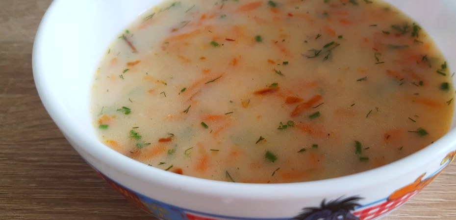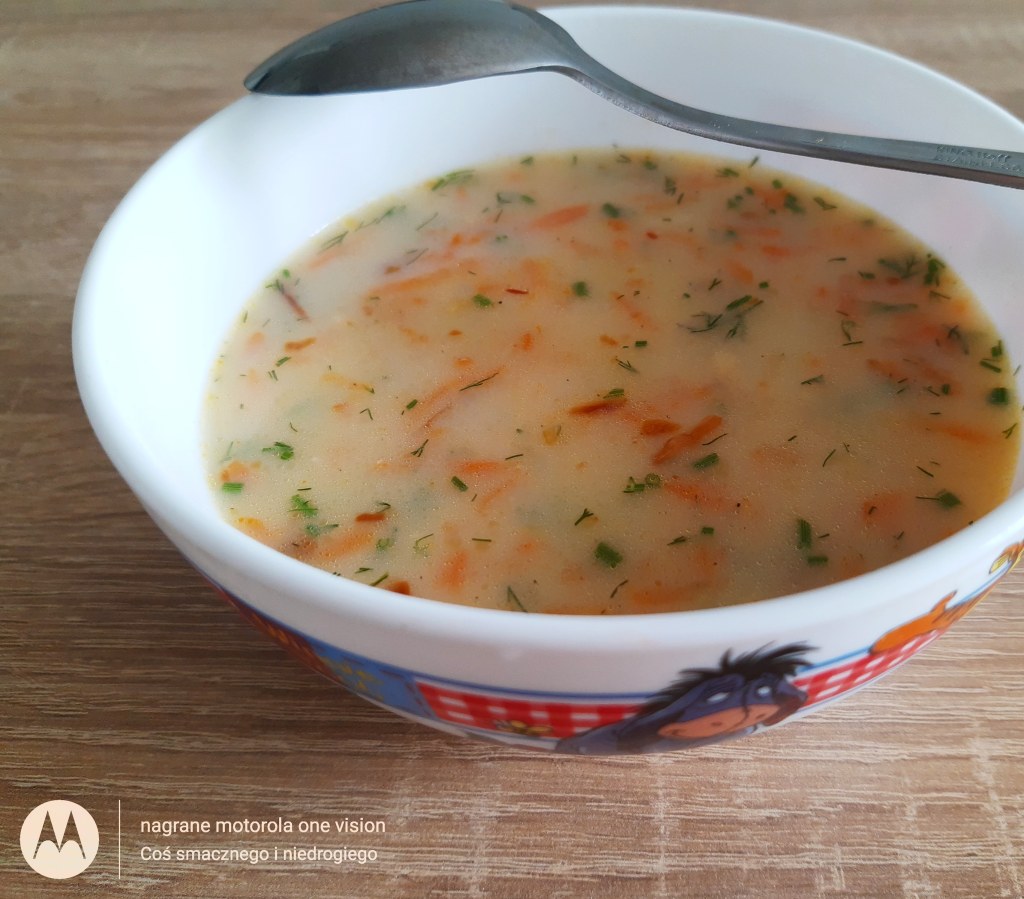 W małym garku gotuję wodę wraz z listkiem laurowym,zielem angielskim i łyżka masła. Do niego dodaję kawałek pora oraz pietruszki oraz ogonki z koperku. Na tarce ścieram na dużych oczkach: marchewkę, seler i łączę z wywarem. Kiedy będą miękkie wsypuję płatki ryżowe, następnie poszatkowany koperek, cebulkę, zabielam mlekiem i delikatnie doprawiam i można jeść 😋 Mam nadzieję, że i u Was jest równie smacznie 😊