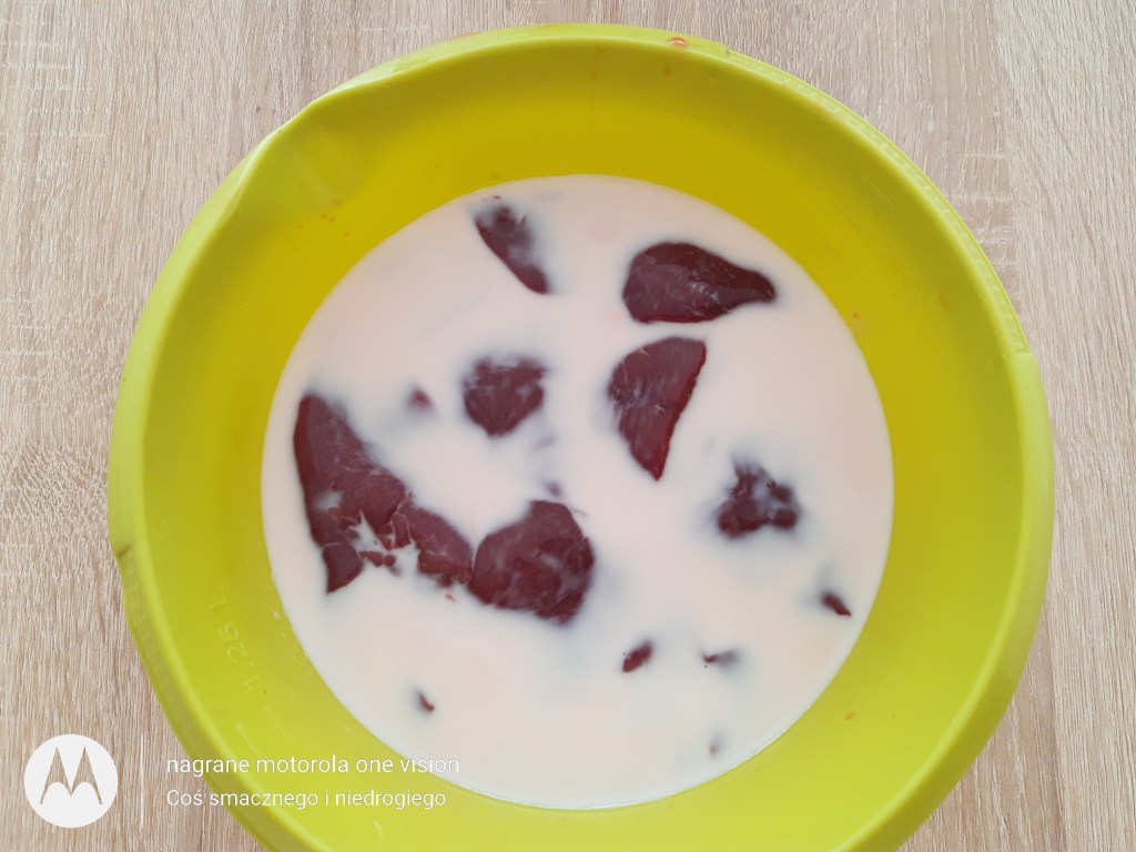 Wątróbkę myję, oczyszczam z błonek i moczę w mleku przez co najmniej godzinę w lodówce. Dzięki temu jest delikatniejsza w tym smaku. Po tym czasie odsączam ją z nadmiaru płynu i przekładam do parowaru.