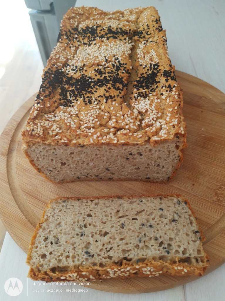 Dzień Dobry,na śniadanie polecam chleb gryczany z sezamem oraz czarnuszką 🥰😋 Inspirujący przepis znalazłam w wartej polecenia pozycji bez,której żaden bezglutenowiec nie powinien zapomnieć czyli 👉: ,,Kuchni polskiej bez pszenicy,, autorstwa Marty Szloser i Wandy Gąsiorowskiej. Oczywiście nie byłabym sobą gdybym go nie zmieniła na swoje potrzeby 🙂 Chleb jest smaczny, posiada zwartą strukturę oraz ciekawy smak 😍