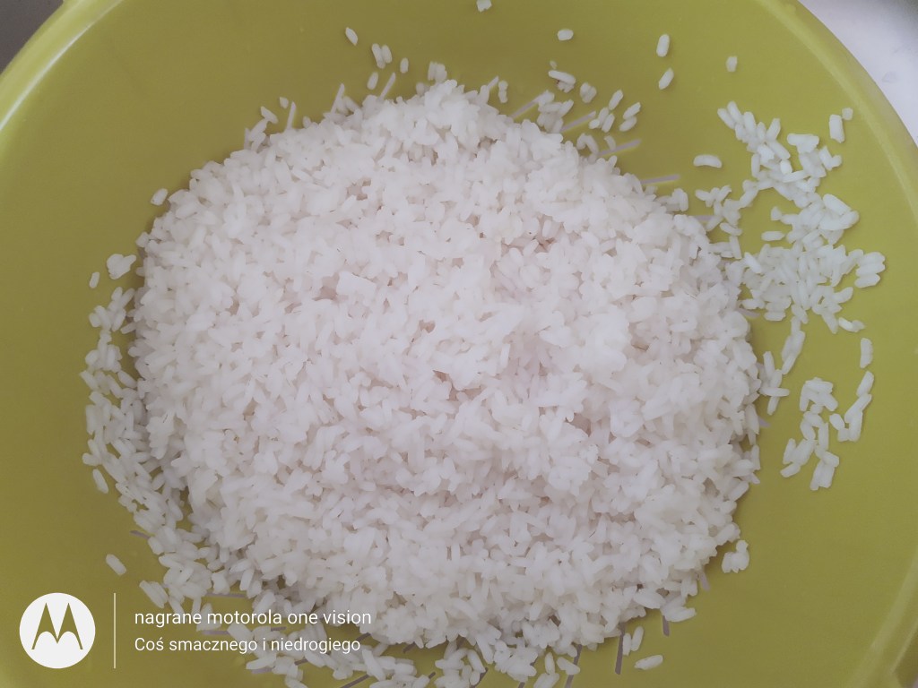 Ryż gotujemy przez okres 10 minut w wodzie,a potem odsączamy.
