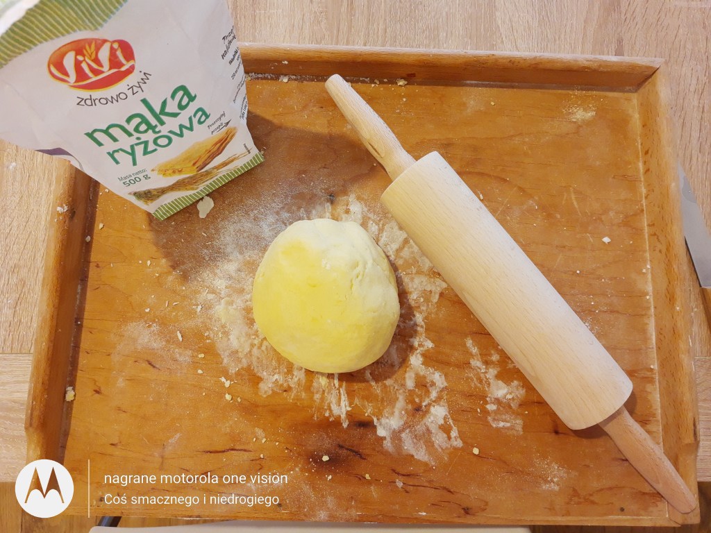 *110 g mąki ryżowej plus jeszcze sporo do posypania w czasie lepienia pierogów,