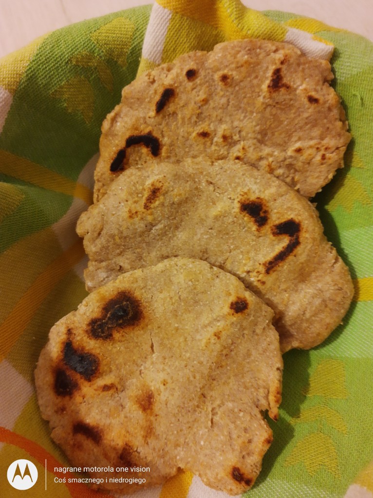 Mój przepis inspirowany powyższym na 3 średniej wielkości podpłomyki to: