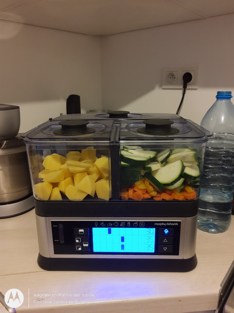 Cały obiad przygotowałam w rewelacyjnym parowarze firmy Morphy Richards w 35 minut (nie licząc czasu przygotowania składników) 🥰 To niezastąpione urządzenie, które niejednokrotnie mnie ratowało w czasie choroby.