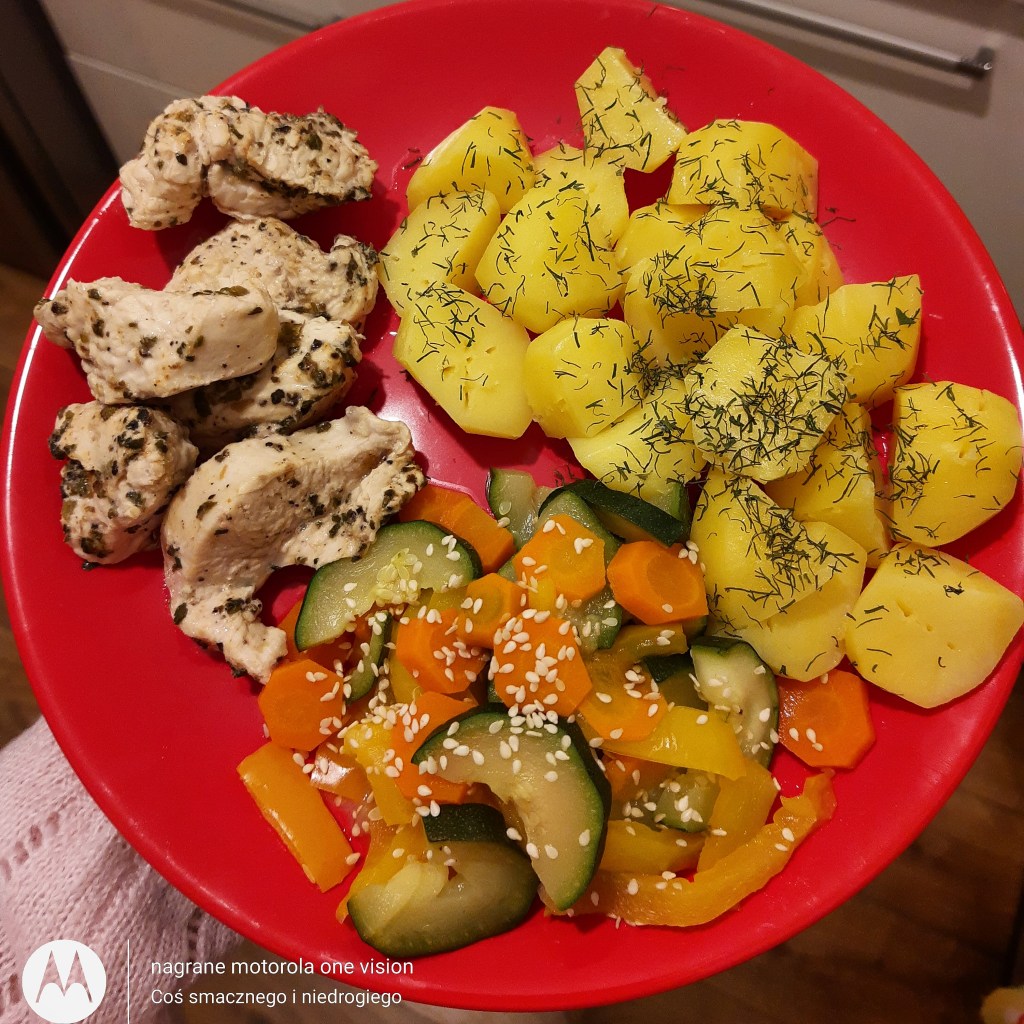 Jak się macie? Przyznaję, że już nie mogłam się doczekać powrotu do mojego łatwostrawnego jedzenia 😂 Dzisiaj danie z parowaru czyli: ziemniaki z warzywami oraz indykiem w mleku kokosowym 🥰 Zatem pysznie, kolorowo i zdrowo 😋
