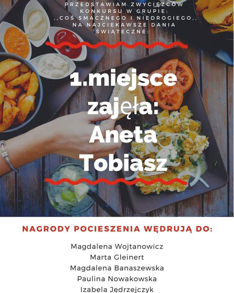 Jest mi niezmiernie miło ogłosić zwycięzców konkursu,który odbył się w grupie ,,Coś smacznego i niedrogiego,, na: Najciekawsze dania świąteczne 😀🥰💪
