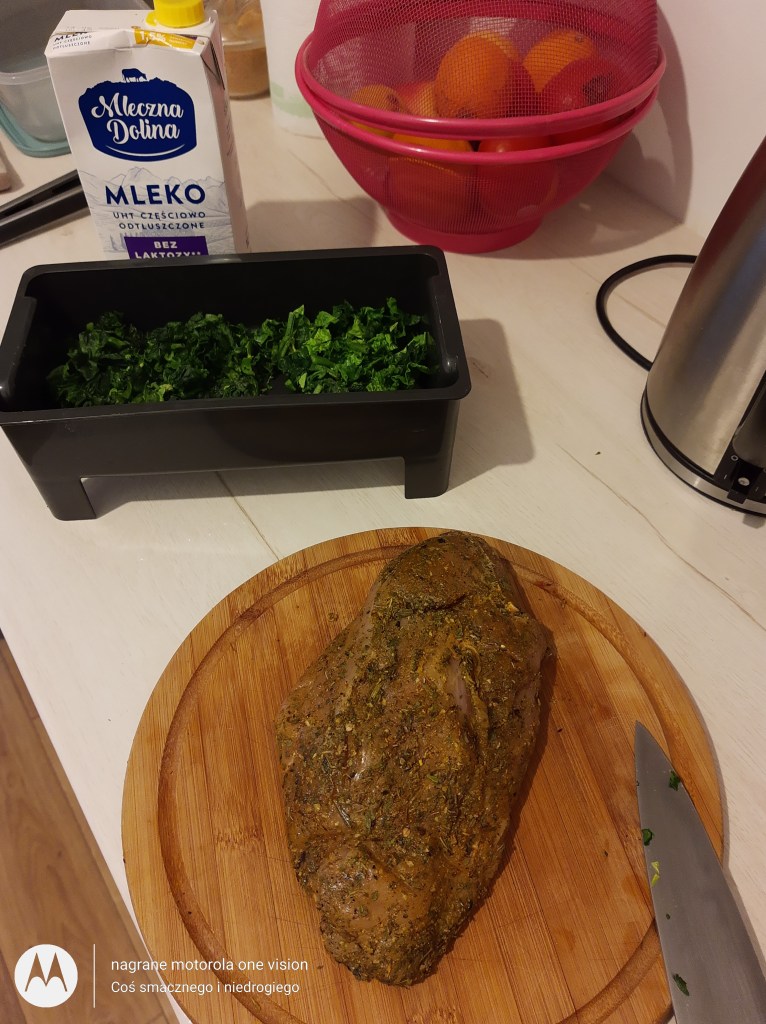 Indyk wraz ze szpinakiem.