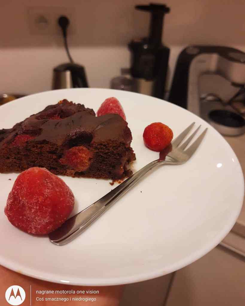 Na deser polecam: ekspresowe, bezglutenowe i bezlaktozowe słodkie ciasto: karobek z truskawkami 💪🥰😋