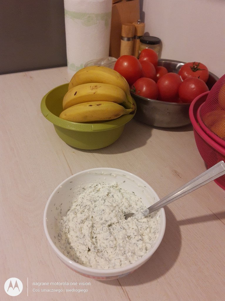 Dodaję do niego: zioła oraz przyprawy i łączę z jogurtem naturalnym bez laktozy.