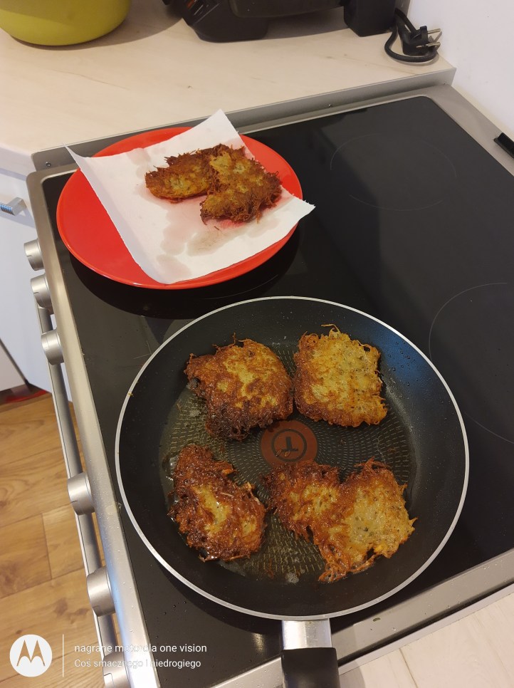 *1 łyżka mąki ziemniaczanej plus skrobia otrzymana z odsączania startych ziemniaków,