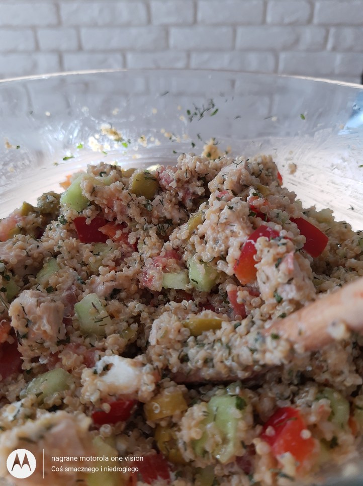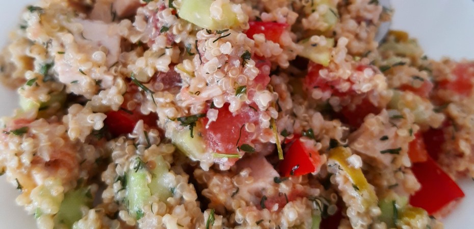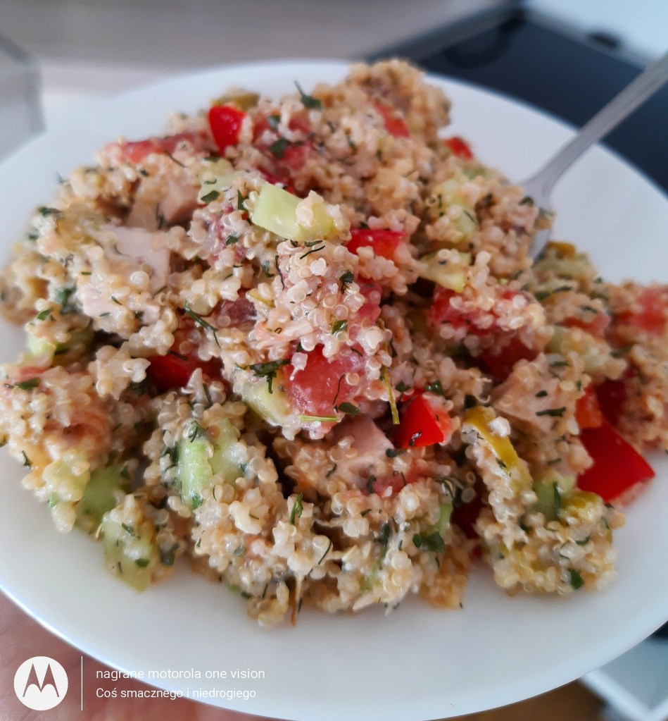 Dzisiaj kolejny superfoods dla kogoś równie… super 😊 Sałatka Ani czyli moja wersja tabbouleh 😋 Na bazie komosy ryżowej (qouinoa), ale także: warzyw, oliwek, dodatku indyka, fety bez laktozy oraz ziół. Zaskakuje smakiem i niezwykle syci, a przy okazji jest bogata w składniki odżywcze i mineralne.