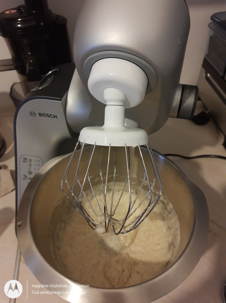 Do misy robota kuchennego Bosh Mum 5 wlewam białka jajek oraz szczyptę soli i ubijam sztywną pianę.