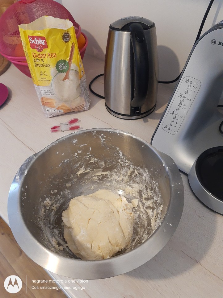 *250 g miksu typu B firmy Schär (chlebowego) plus odrobinę do zagniecenia ciasta,