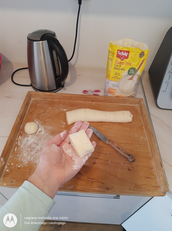 Potem zaczynam je ,,turlać,, tak aby uzyskać kształt kluski.