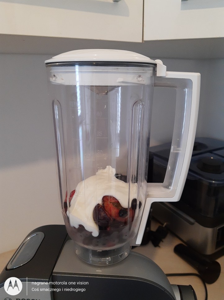 Wszystkie składniki dodaję do blendera Bosh Mum 5 i miksuję.