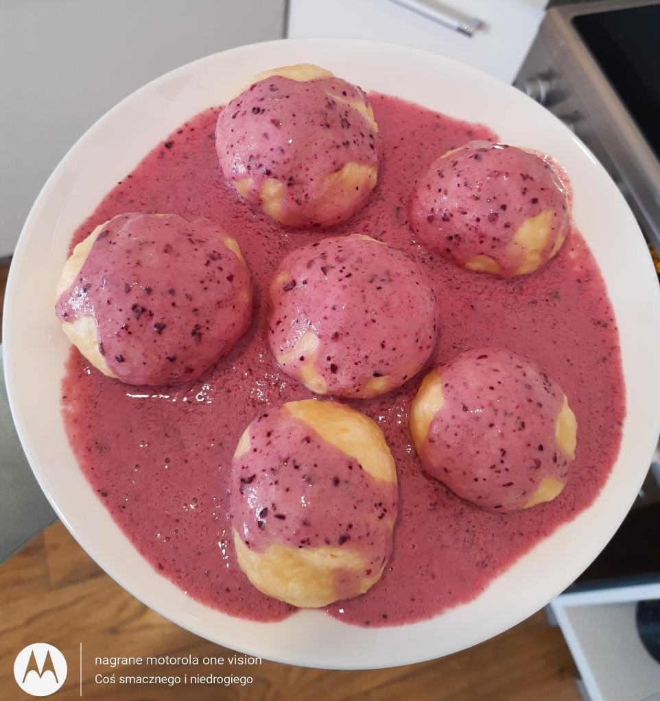 Na obiad polecam: mięciutkie pozbawione glutenu i laktozy kluski na parze polane owocowym sosem 🥰😋 Jak było u Was? 🤔