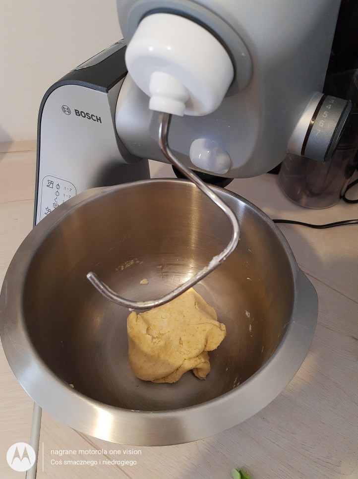 Do misy blendera Bosh Mum 5 wsypuję wszystkie suche składniki oraz dodaję mokre i wbijam żółtka oraz uruchamiam sprzęt.