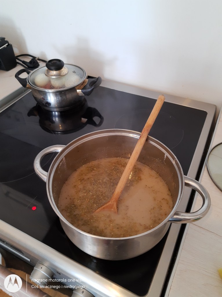 Kiedy warzywa będą miękkie wszystkie wyjmuję i do wywaru dodaję zakwas lekko podgrzewając a nie gotując.