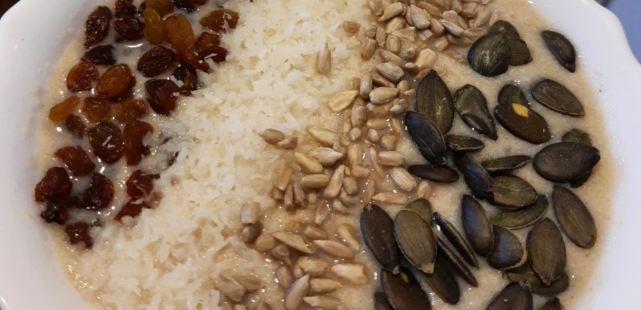 *dodatkowo: do posypania: pestki dyni, słonecznika, wiórki kokosowe oraz rodzynki i ewentualnie wrzątek.