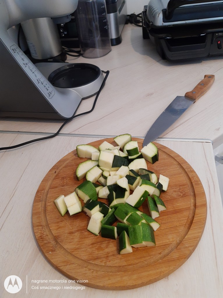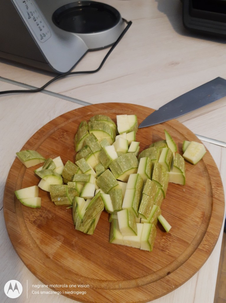 Warzywa kroję w grubszą kostkę (oprócz pora i łodyżek koperku).