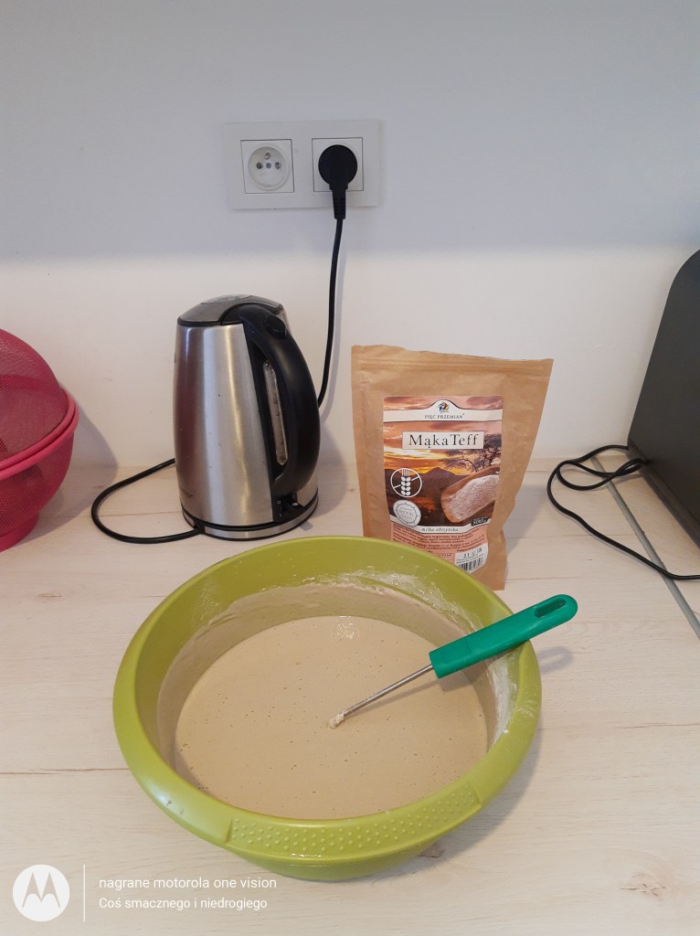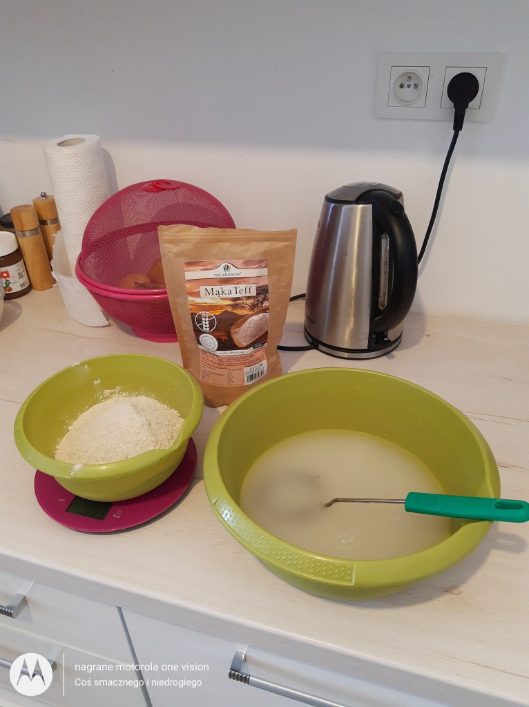 *350 g mąki teff (czyli miłki abisyńskiej) bezglutenowej,