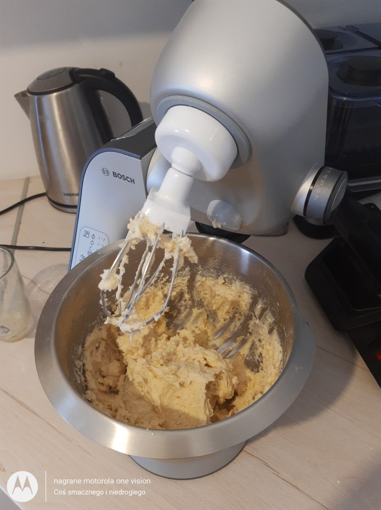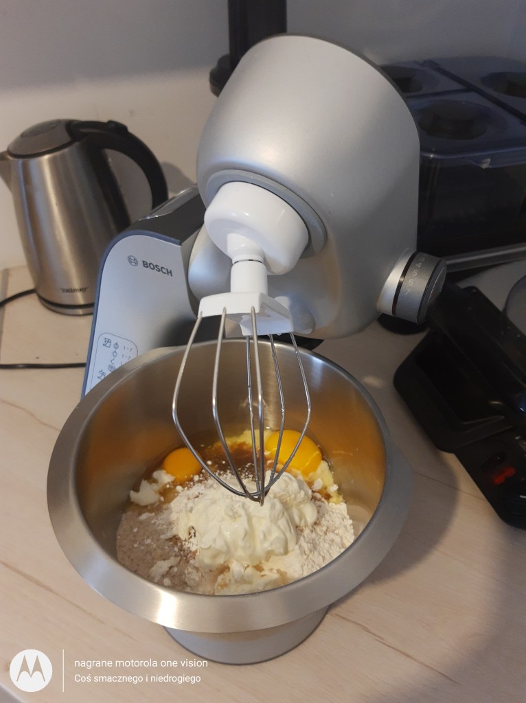 Potem wbijam jajka oraz nie zapominam o jogurcie naturalnym.