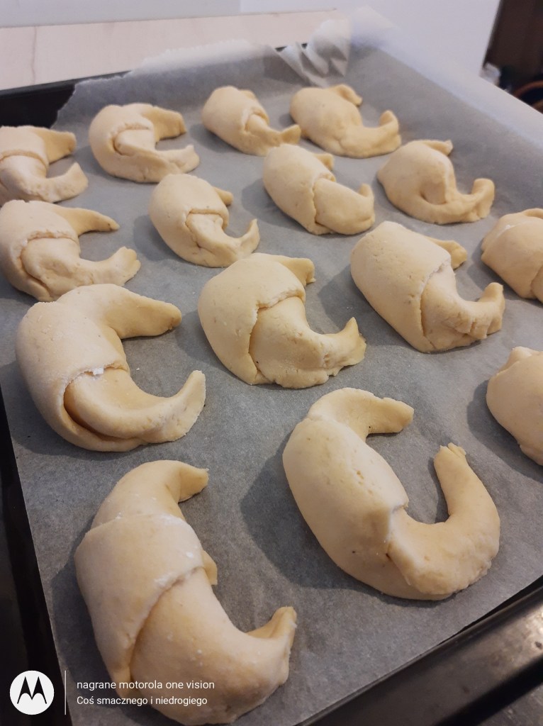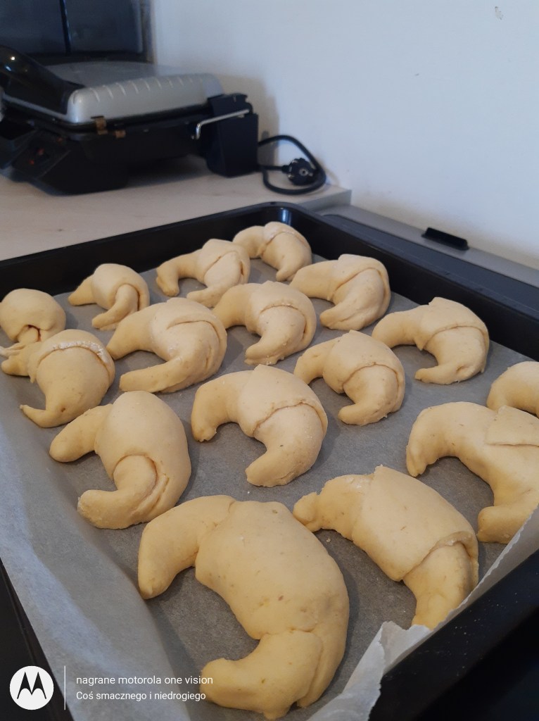 *dodatkowo: papier do pieczenia i żółtko (lub całe jajko) do posmarowania rogalików.