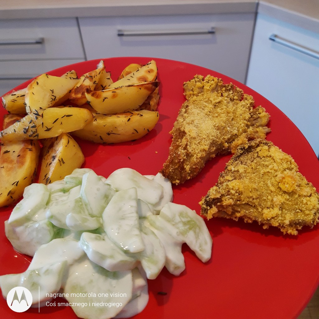 Co zrobić na szybki obiad? 🤔 Moja propozycja jest następująca: pyszne tymiankowe ćwiartki ziemniaczane plus kotlety z boczniaka prosto z piekarnika wraz z mizerią 🥰😋 Jak było u Was?