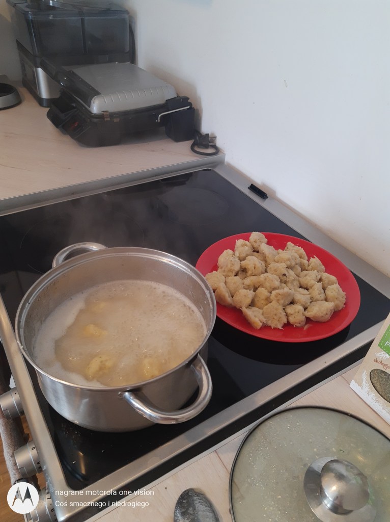 Łyżką nakładam określonej wielkości kluski, które obgotowuję.