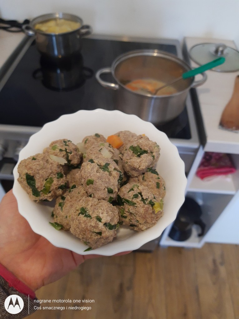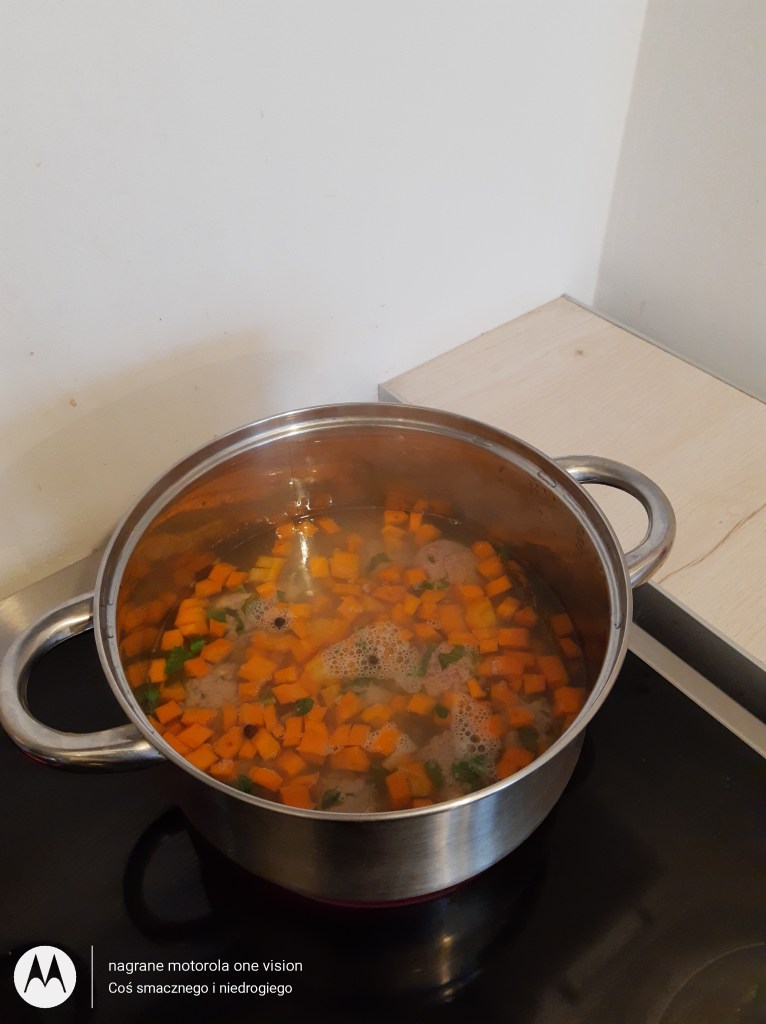 Gdy warzywa będą miękawe dodaję pulpety.