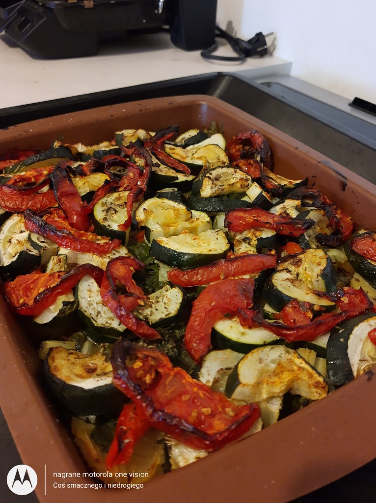 Briami wkładam do nagrzanego piekarnika na ok 180 stopni w termoobiegu piekę przez 1 godzinę i 15 minut.