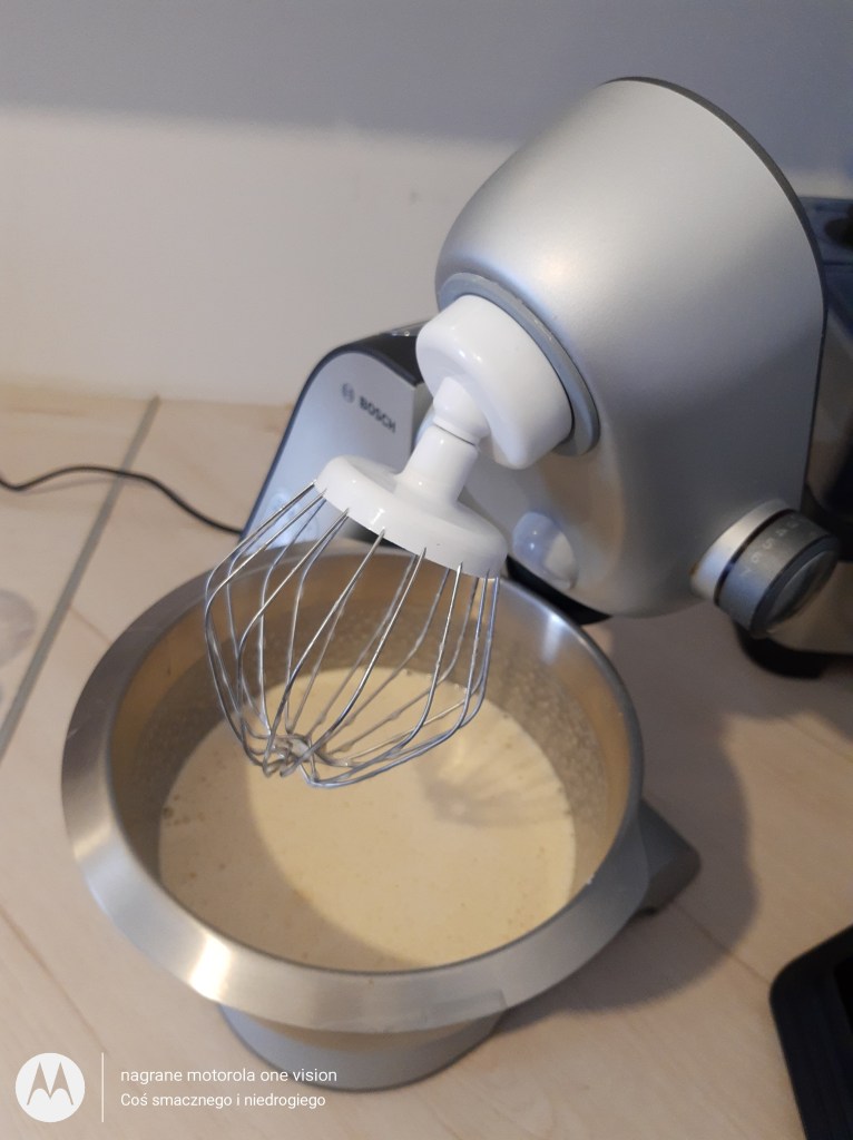 Do misy robota kuchennego wbijam jajka oraz wbijam na pianę.