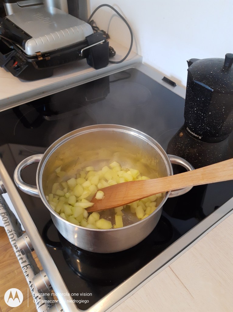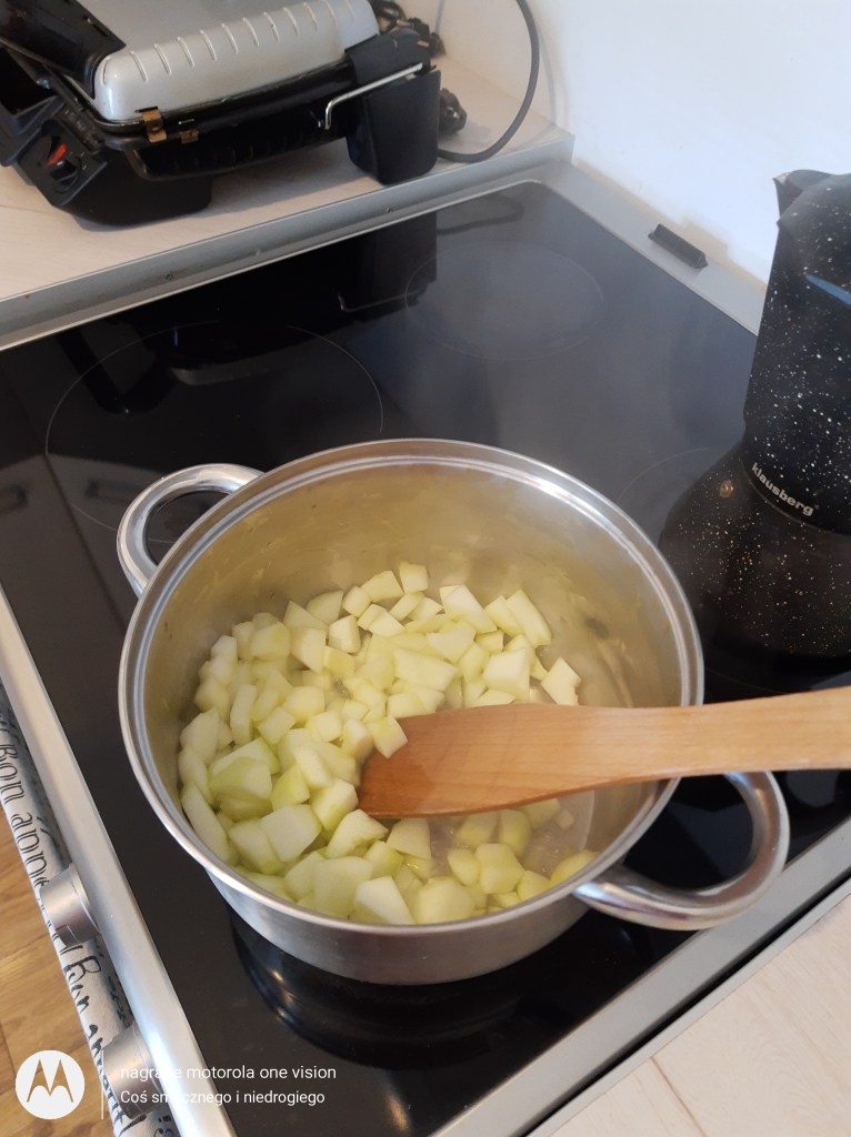 Do garnka z niewielką ilością wody dokładam pokrojone warzywo i podduszam do miękkości.
