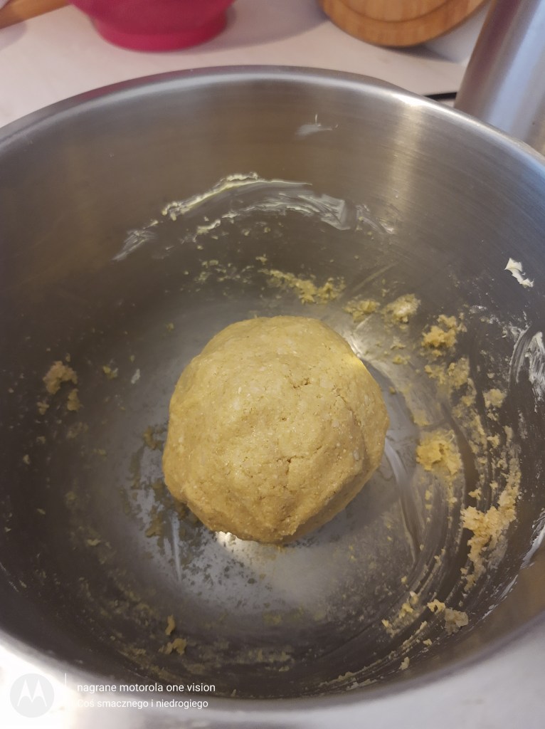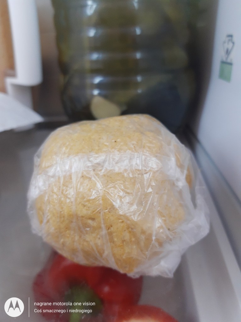 Następnie uruchamiam sprzęt i miksuję do momentu połączenia się składników oraz uzyskania odpowiedniej formy ciasta, które dodatkowo jeszcze ręcznie wyrabiam i przekładam do woreczka śniadaniowego.