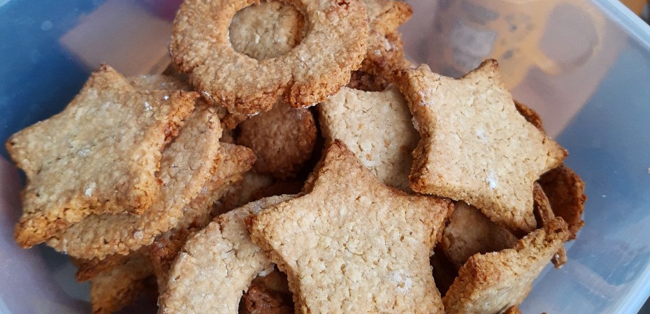 Jeśli są to cieńkie ciastaczka to piekę je przez 12 minut w 180 stopniach na funkcji termoobieg. Gdy wolicie nieco grubsze wówczas trzeba wydłużyć czas do około 18 minut.
