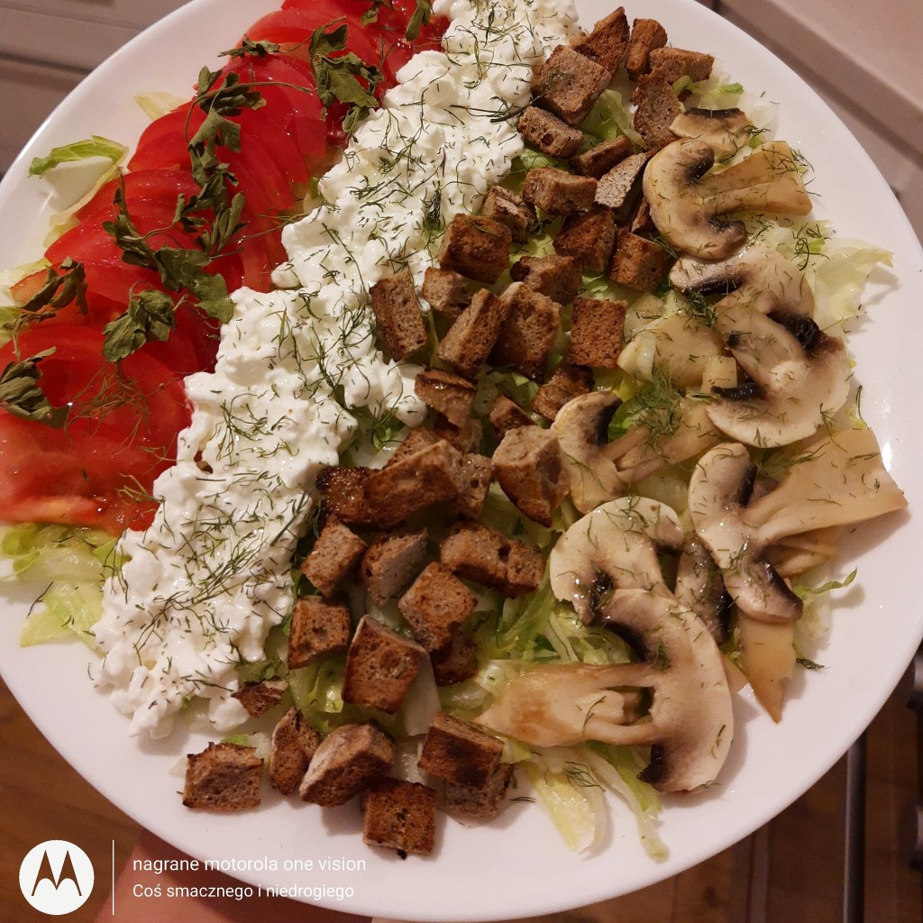 Na kolację polecam: prostą i smaczną sałatkę z serkiem wiejskim bez laktozy, pieczarkami oraz pomidorem 😋 Wszystko okraszone: suszonymi, domowymi ziołami także dosłownie ,,niebo w gębie,, Mam nadzieję, że u Was było równie pysznie 😘