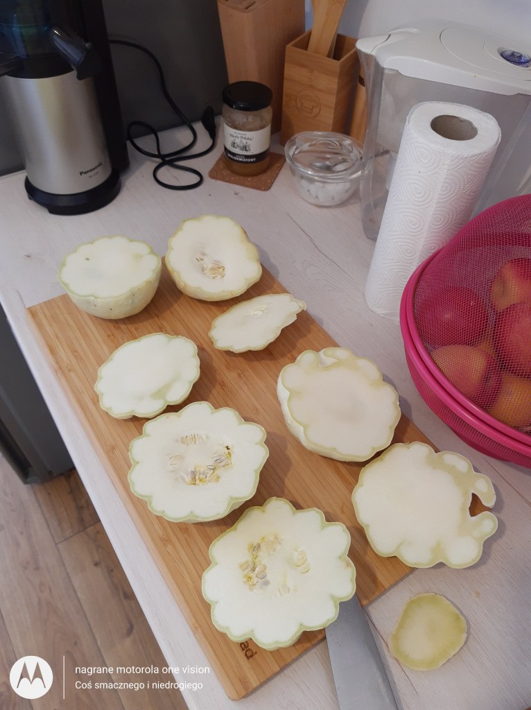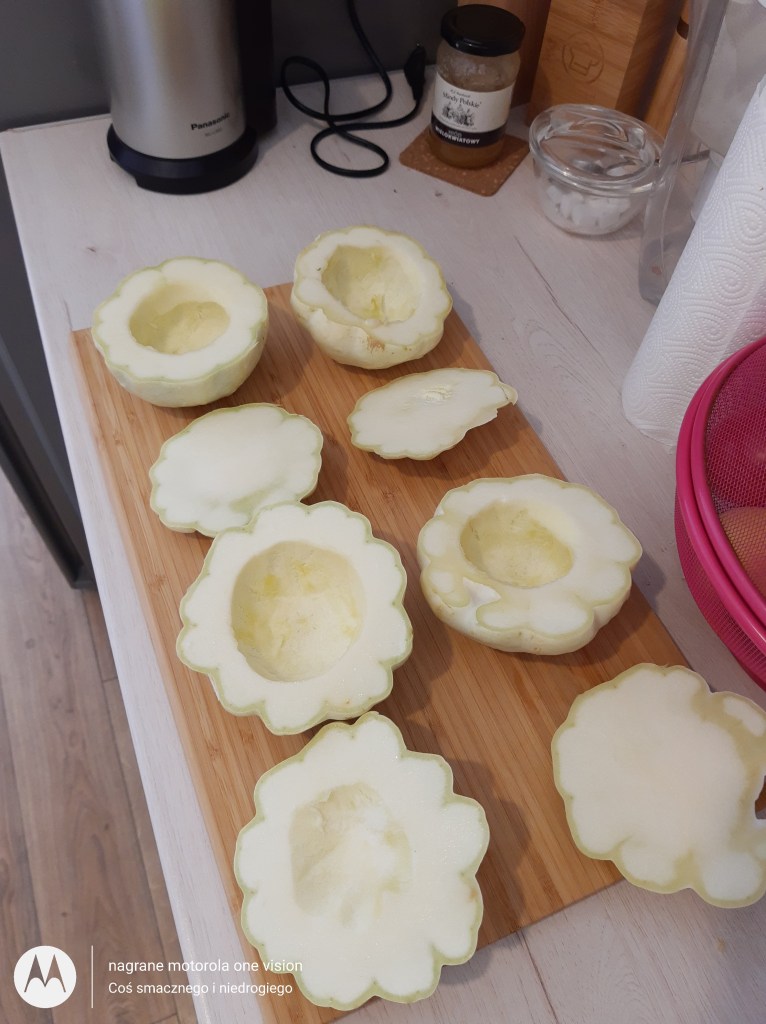 Potem zabieram się za umycie patisów, z których odcinam górną część czyli ,,daszek,,.
