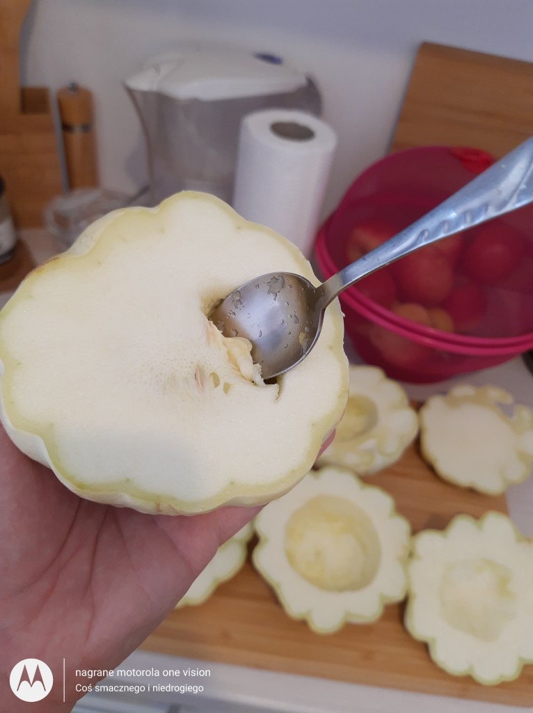 Miąższ znajdujący się w środku wydłubuję za pomocą małej łyżeczki.