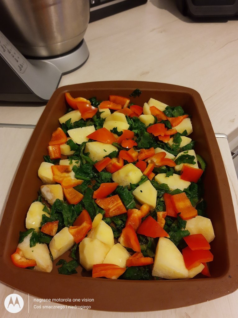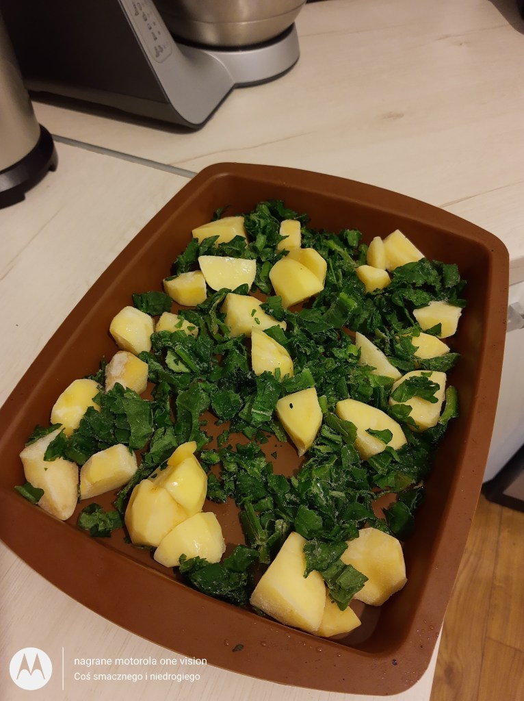 *200 g zamrożonych ziemniaków (gdy mam nadmiar często mrożę warzywa tylko wcześniej obieram,myję,kroję i wstawiam do zimnej wody, bo to spowoduje iż później nie ściemnieją),