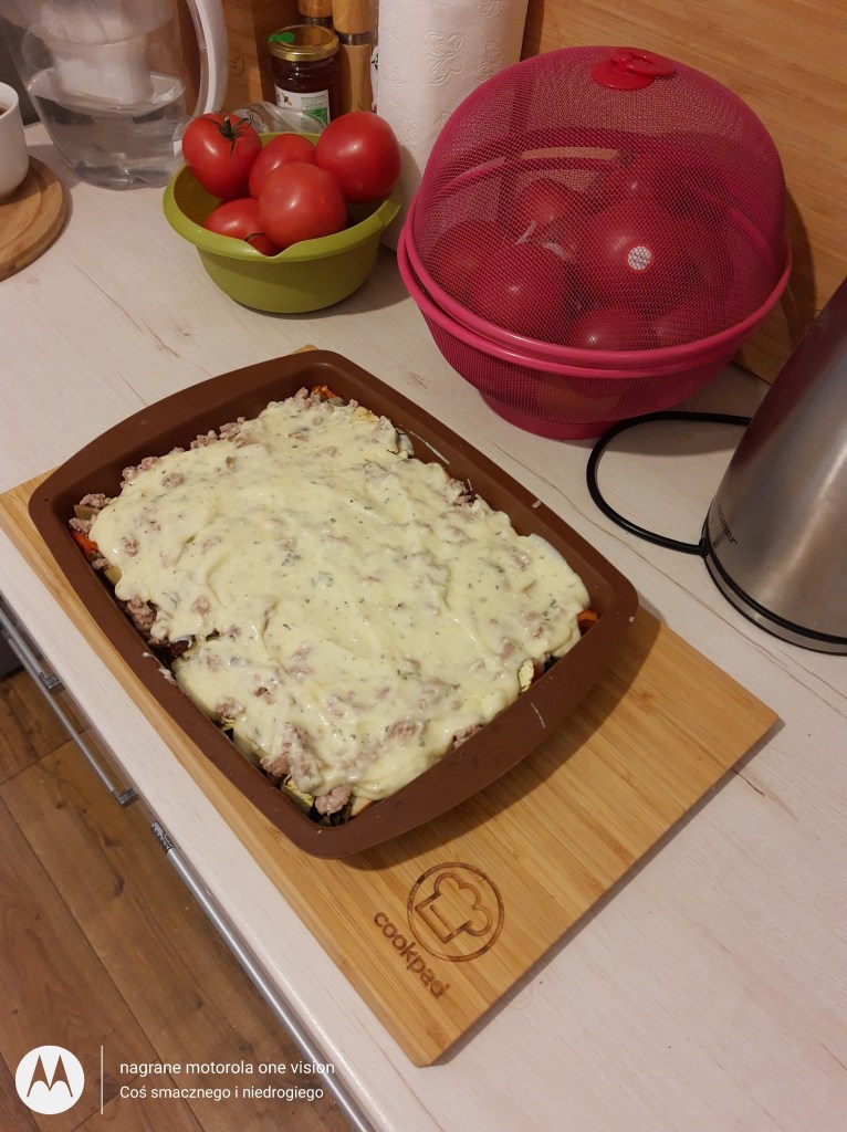Co pysznego upichciliście? U mnie naprędce powstała pyszna zapiekanka: z warzywami, indyczym mięsem mielonym pod beszamelem wzbogaconym fetą oraz domowymi suszonymi ziołami 😋