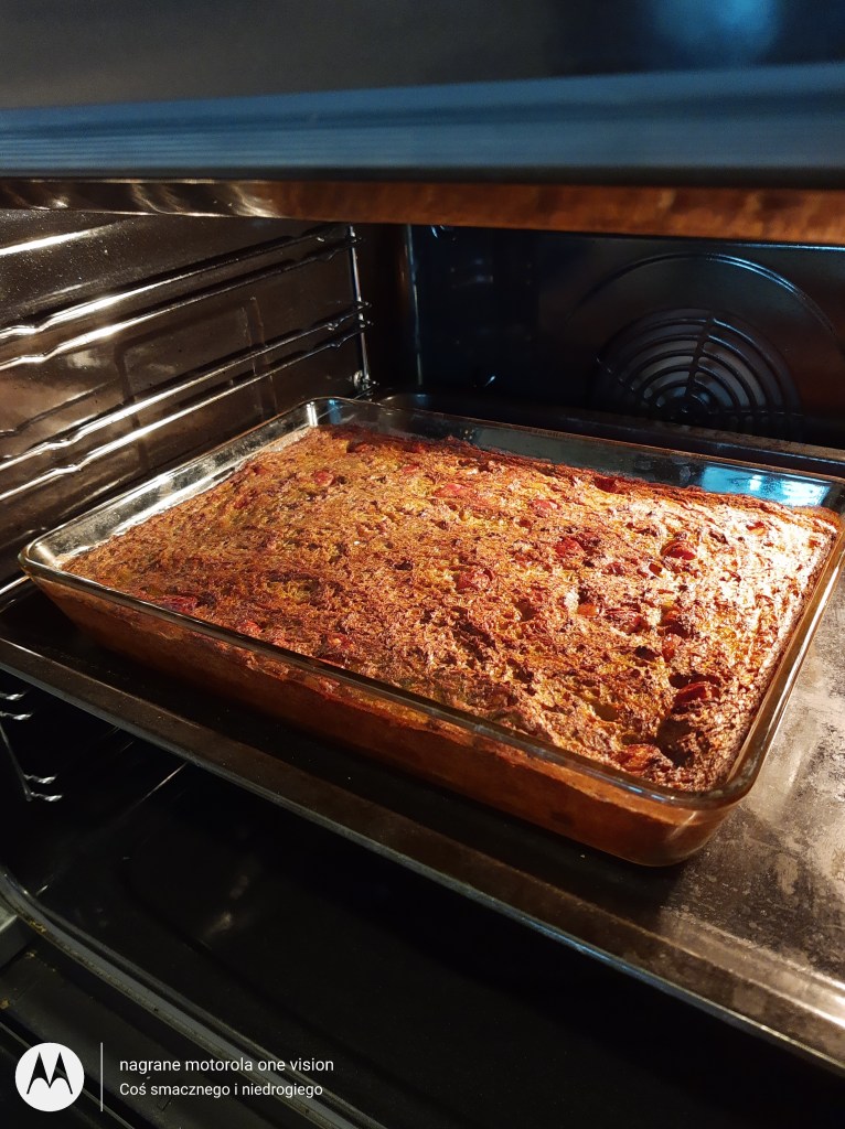 Babkę ziemniaczaną wkładam do nagrzanego piekarnika na ok 200 stopni na funkcji termoobieg i piekę w tej temperaturze przez 60 minut, potem zmniejszam do 180 stopni i przez kolejne 30 minut.