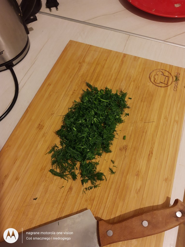 Pieczarkową doprawiam solą i poszatkowanym koperkiem.