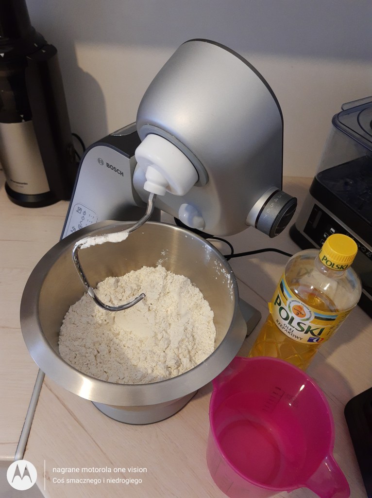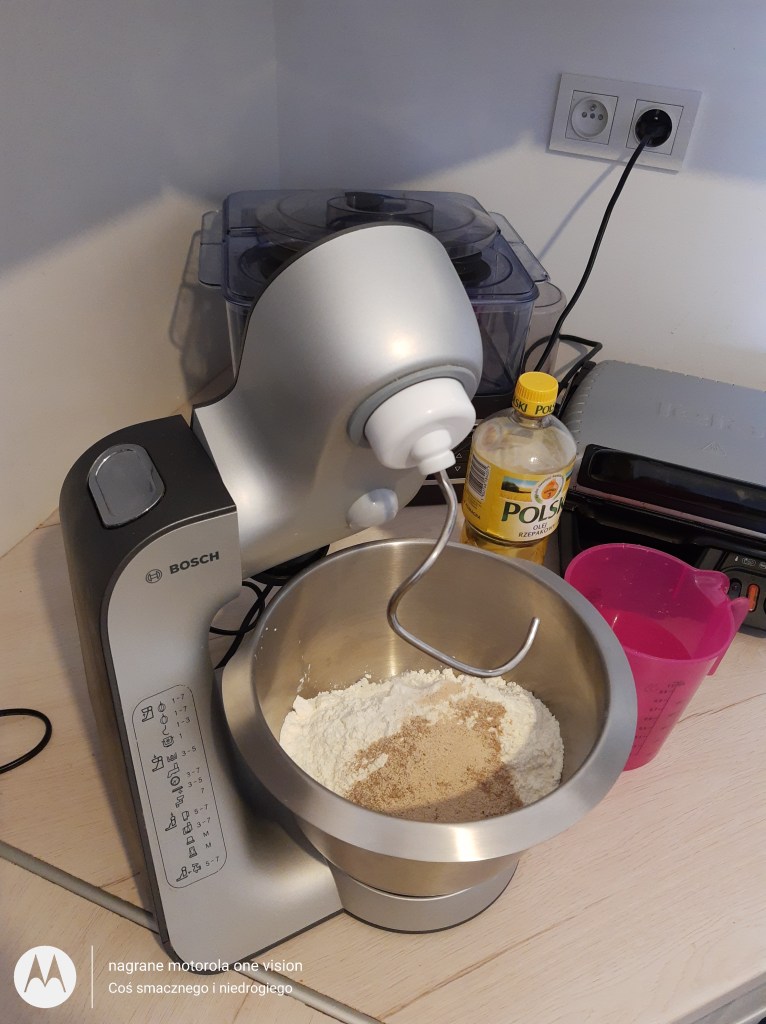 *500 g Mehl Farine Schär (tj. uniwersalną mieszankę) plus odrobinę jaką zużyłam do zagniatania ciasta oraz podczas przygotowywania bułek,