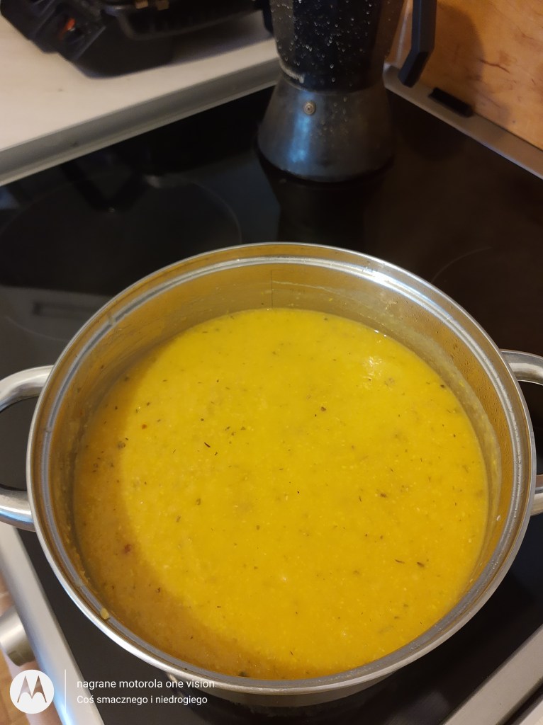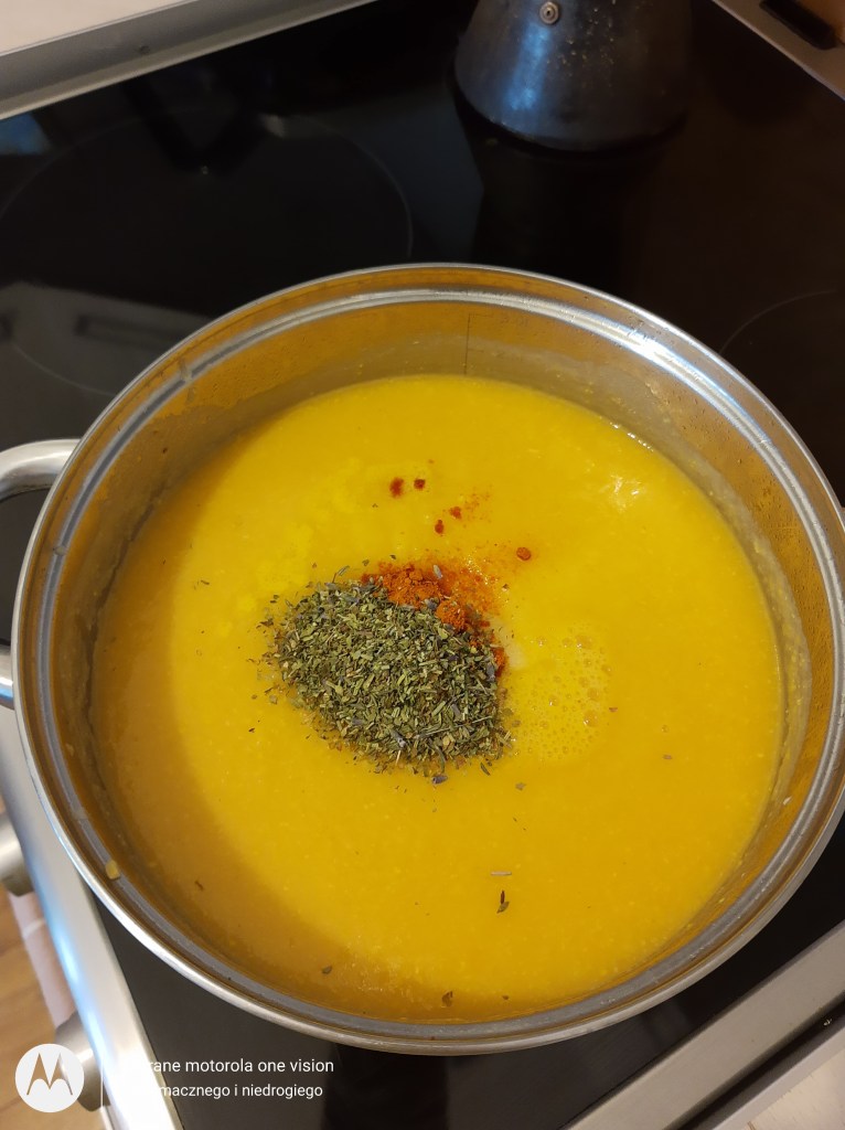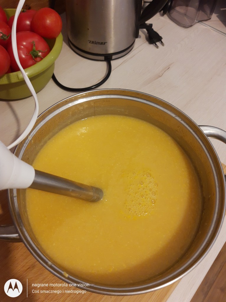 Jeszcze chwilę gotuję, ale zaraz potem blenduję na jednolitą masę. Natomiast na samym końcu zupę doprawiam pozostałymi przyprawami.