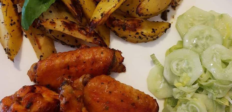 Hej, dziś wybierając się do sklepu byłam przekonana, że przygotuję rosół, jednak zmieniłam zdanie i tym samym powstał obiad prosto z piekarnika 💪 Zapraszam na ketchupowo-miodowe skrzydełka z kurczaka, którym towarzyszą ziołowe ziemniaki oraz mizeria ogórkowa. Jak było u Was? Trzymajcie się ciepło 😘