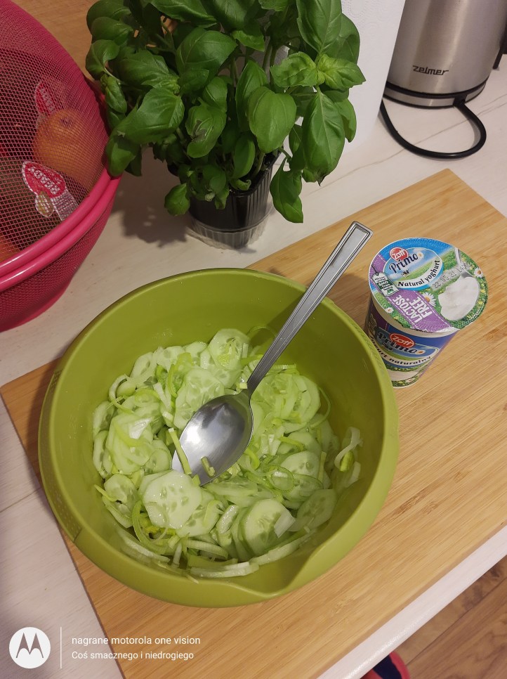 Na samym końcu mizerię łączę z jogurtem naturalnym.
