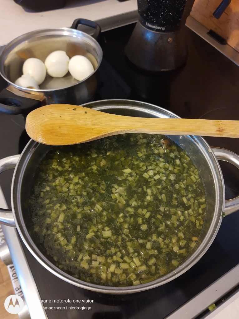 Pod sam koniec dodaję pokrojone warzywa oraz szczaw i gotuję przez chwilę.