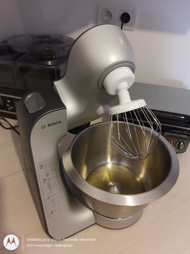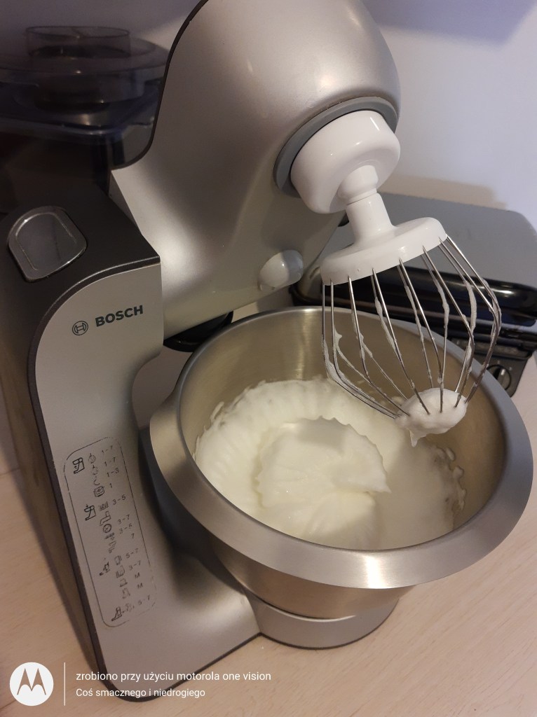 Potem białka ubijam na sztywno wraz ze szczyptą soli.