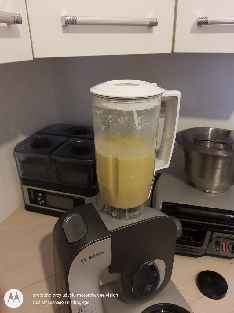 Smoothie wychodzi puszyste i tym samym polecam przechowywać w lodówce.