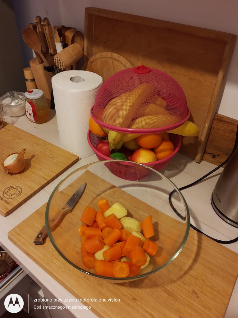 Pozostałe warzywa blenduję i zaraz potem dokładam cebulę.